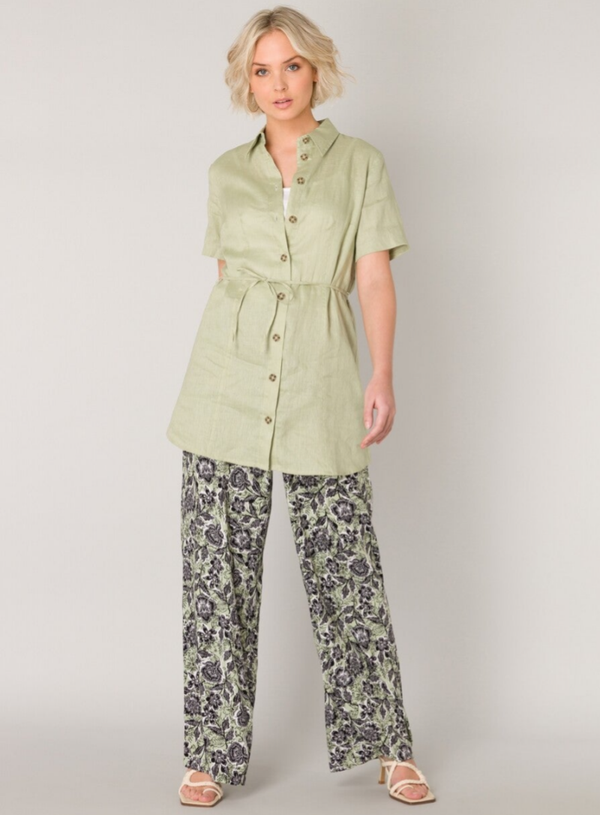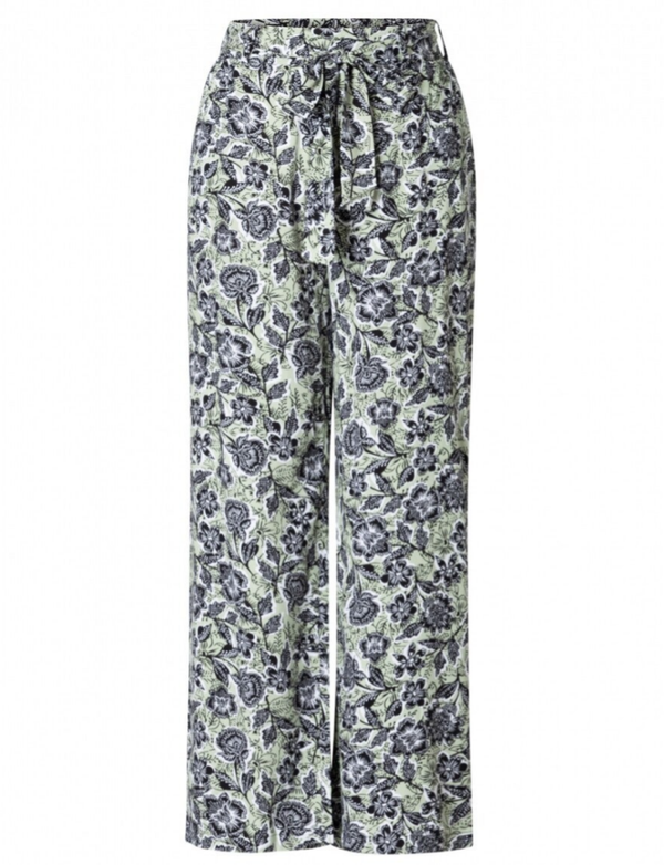Wijde broek 'Izzi' van Yest Fashion met rechte pijpen en een all-over print in een soepele viscose kwaliteit. De elastische tailleband heeft riemlusjes en de broek is voorzien van een stoffen ceintuur in dezelfde stof. Lengte: 31inch. Materiaal: 100% viscose