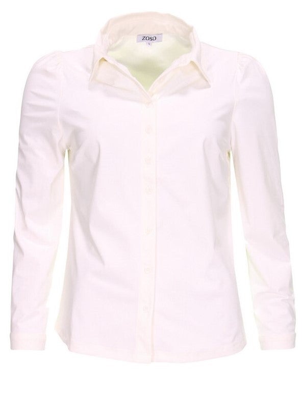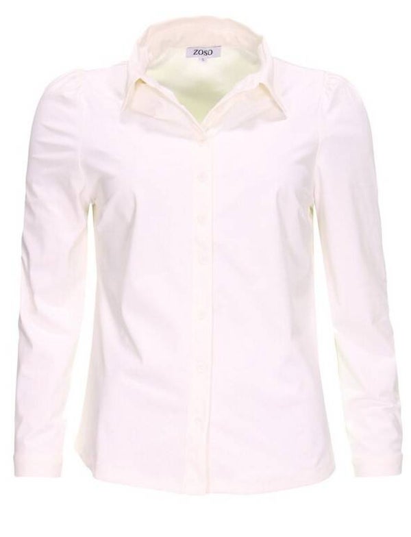 Zoso Blouse Kim is een basic Travelblouse van ZOSO. Blouse Kim heeft een doorknoopsluiting, een kraagje en bustenaden voor de elegante look. Bovenaan heeft de mouw plooitjes voor een subtiel poffend effect en onderaan sluit de mouw met een smal manchet met knoopje. Deze prachtige blouse biedt de perfecte combinatie van stijl, comfort en veelzijdigheid voor jouw reizen of dagelijkse bezigheden. Een musthave travelblouse!