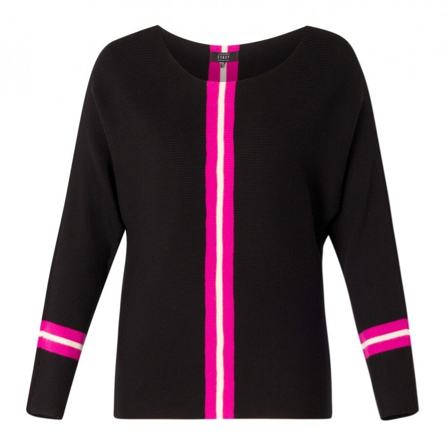 De Pieta van ES&SY is een heerlijk zachte trui in een ribbreisel met opvallende accent strepen in het midden en op de mouw. De trui heeft een ruime boothals en een aangeknipte lange mouw. Lengte: 55cm. Materiaal: 50% Viscose, 28% Polyester, 22% Polyamide