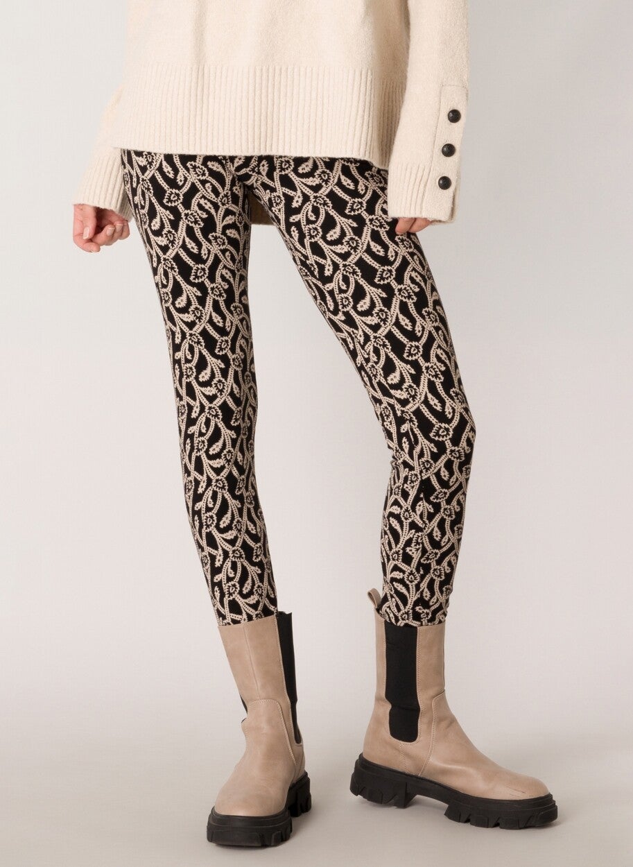 Fijne jersey legging van Yest Fashion in een viscose/elastan mix met een zwart-wit paisley print. Materiaal: 94% Viscose, 6% Elastan. Lengte 29 inch