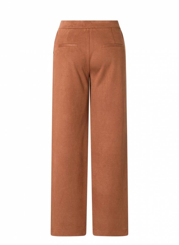 Pantalon van Yest in een wijd, recht model. Deze broek heeft een brede elastische tailleband en fijne steekzakken. Verkrijgbaar in de kleur Warm Brown. Mateeriaal: 95% Polyester, 5% Elastan