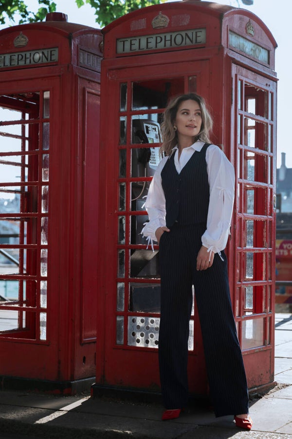 Elvira Collections Blouse Babette is een trendy blouse met lange mouwen, een kraag en een doorlopende knoopsluiting. De mouwen zijn afgewerkt met trendy strikdetails.