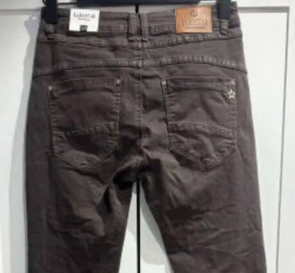 ★ Donkerbruine jeans van Karostar met knoopsluiting. Deze jeans zit zó lekker, die wil je elke dag wel aan!