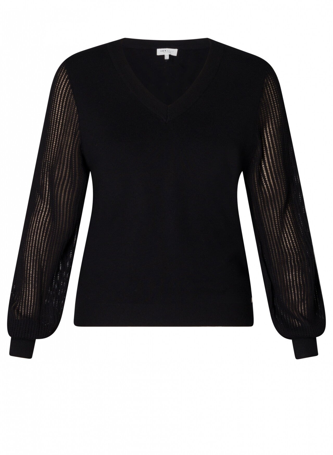 Trui Elsie is een gebreide trui met een vrouwelijke V-hals en elegante mouwen van fijnmazig breisel. De mix van structuur en eenvoud maakt dit item veelzijdig én stijlvol. Verkrijgbaar in offwhite en zwart, uit de Ivy Beau herfstcollectie.