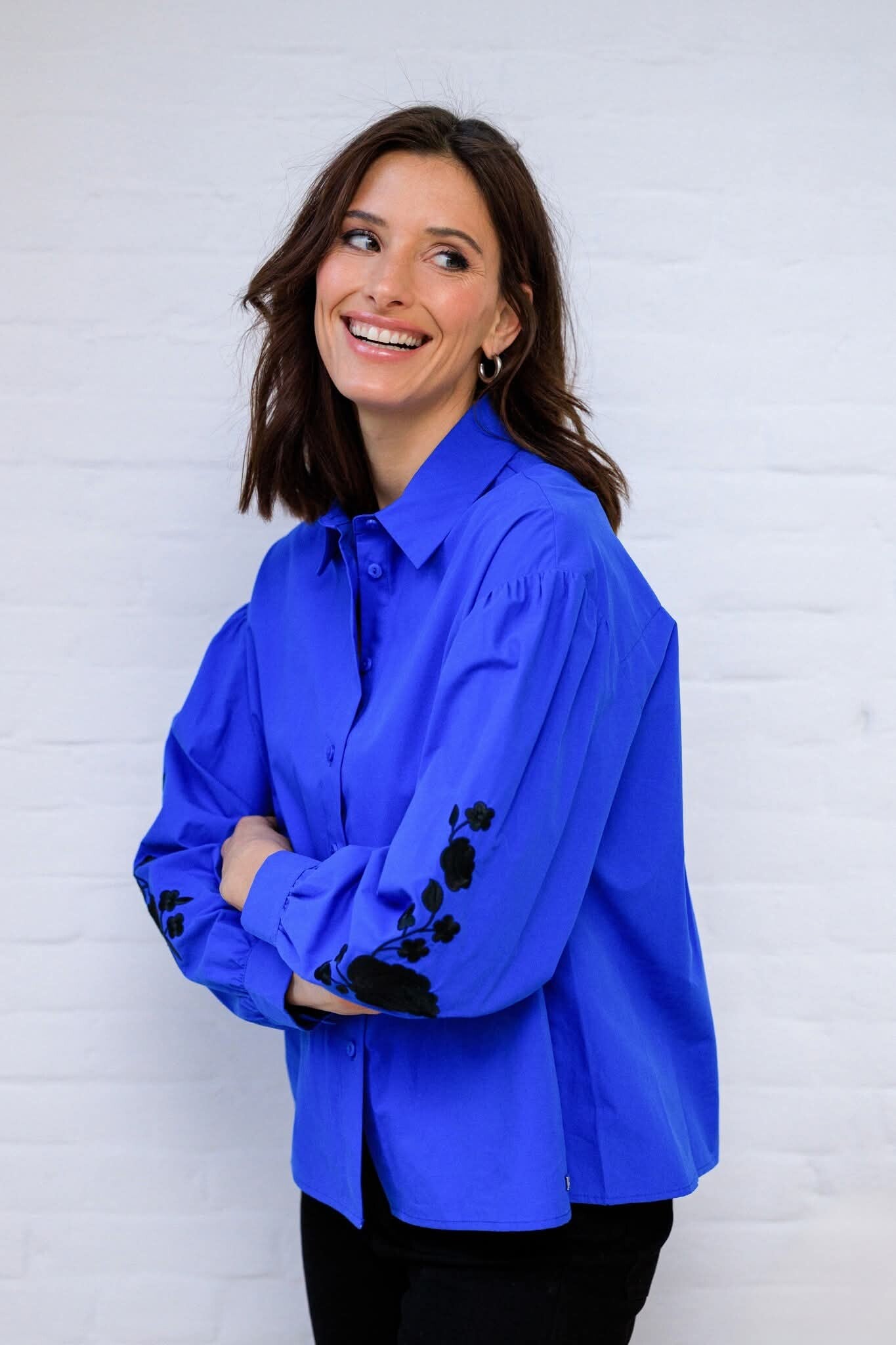 Zo’n blouse waar je je in wilt laten zien. Blouse Eslina is gemaakt van luchtig katoen en heeft pofmouwen met opvallend borduursel dat kracht en vrouwelijkheid tegelijk uitstraalt. Verkrijgbaar in drie kleuren, maar die mouwen? Die stelen hoe dan ook de show.