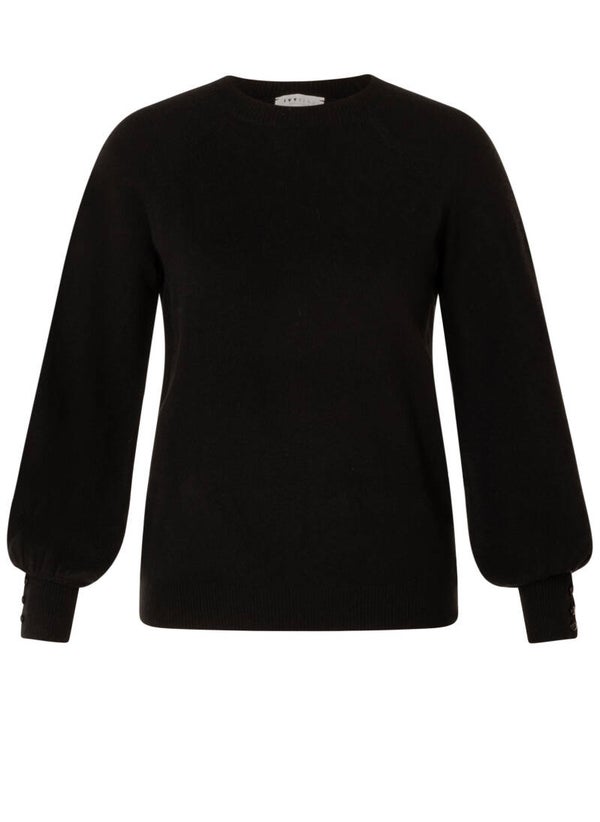 Deze trui voelt aan als luxe in casual vorm. Gemaakt van een zachte mix met een vleugje wol, met wijde raglanmouwen die eindigen in een slank manchet met knoopjes. De ronde halslijn maakt 'm tijdloos—zwart, stijlvol en verrassend comfortabel.