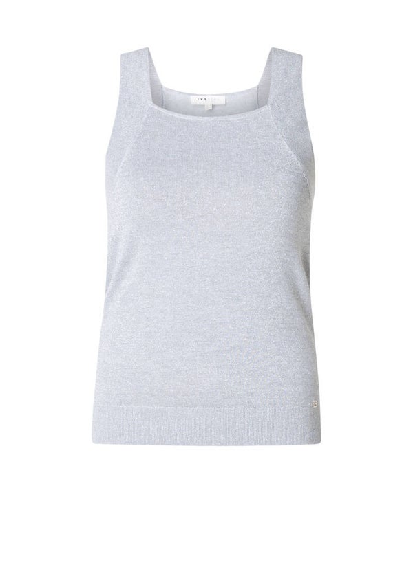 Deze zilverkleurige top is een subtiele blikvanger in je feestgarderobe. Het gebreide materiaal met lurex geeft een lichte glans, terwijl de brede bandjes zorgen voor comfort en een mooie pasvorm. Ideaal voor de decembermaand, zowel los gedragen als onder een vestje of blazer.