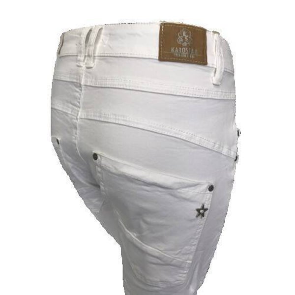 ★ Jeans van Karostar in wit met knoopsluiting. Heerlijk zittende stretchjeans in een mooie pasvorm voor een betaalbaar prijsje! Verkrijgbaar in maat 36 t/m 48. Deze jeans zit zó lekker, dit is een absolute musthave!