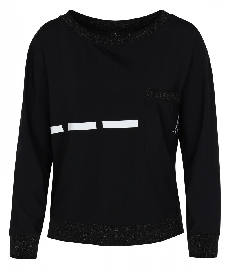 Top Gabi van Elvira Collections is een zwarte top in travelkwaliteit. De top heeft een ronde hals, lange mouwen en een rechte pasvorm. De boorden zijn afgewerkt met subtiele zilveren glitters, de witte details maken de trui helemaal af! Combineer met de Gabi Trouser voor een travelpak! Materiaal: 76% Polyamide, 24% Elastan. Artikelnummer: E4 22-011