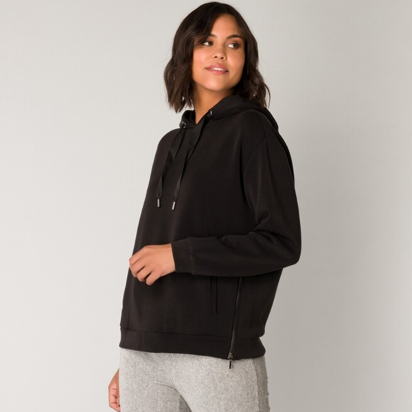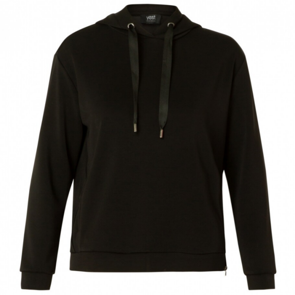 Zachte hoodie in een gladde jersey stof. De Gille Essential van YEST heeft een Comfort Fit en is gemaakt van 48% Polyester, 48% Modal en 4% Elastan. Deze Sweater is verkrijgbaar in Black. Lengte 62cm