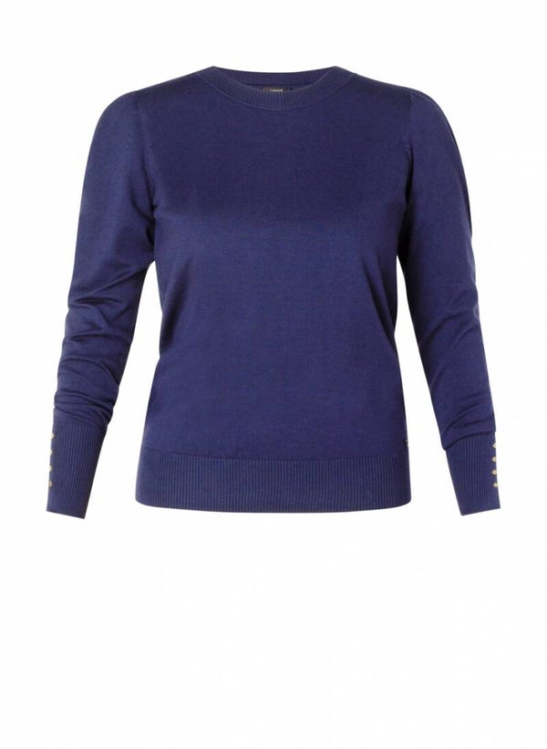 Dunne gebreide trui met een ronde hals en knoopjes langs de geribte manchetboorden. Trui Olava van YEST heeft een Regular Fit en is gemaakt van 75% Viscose en 25% Nylon. Deze Trui is verkrijgbaar in Black en Night Blue. Lengte 64 cm.