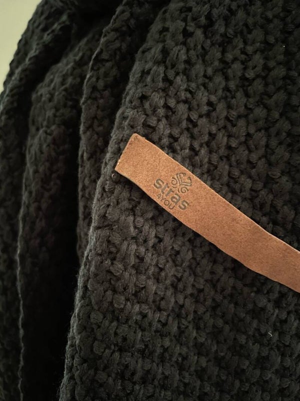Deze mooie grote sjaal in de kleur zwart van het merk Stras4You kan deze winter niet ontbreken in jouw garderobe. Deze sjaal kun je rond je nek slaan en een van de uiteinden door het leren bandje steken om op z'n plaats te houden.