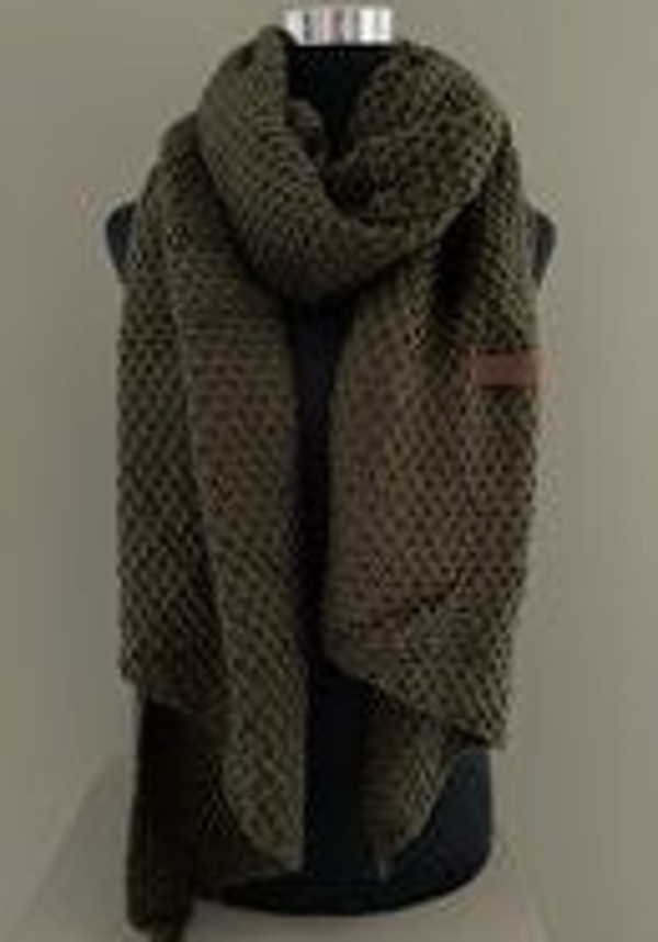 De sjaal is te verkrijgen in de kleur; zwart, bruin en groen.